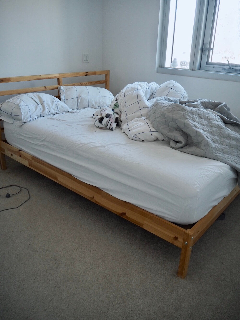寝具はこの日は洗わなかったのでベッドメイキングして床の掃除をする作業。