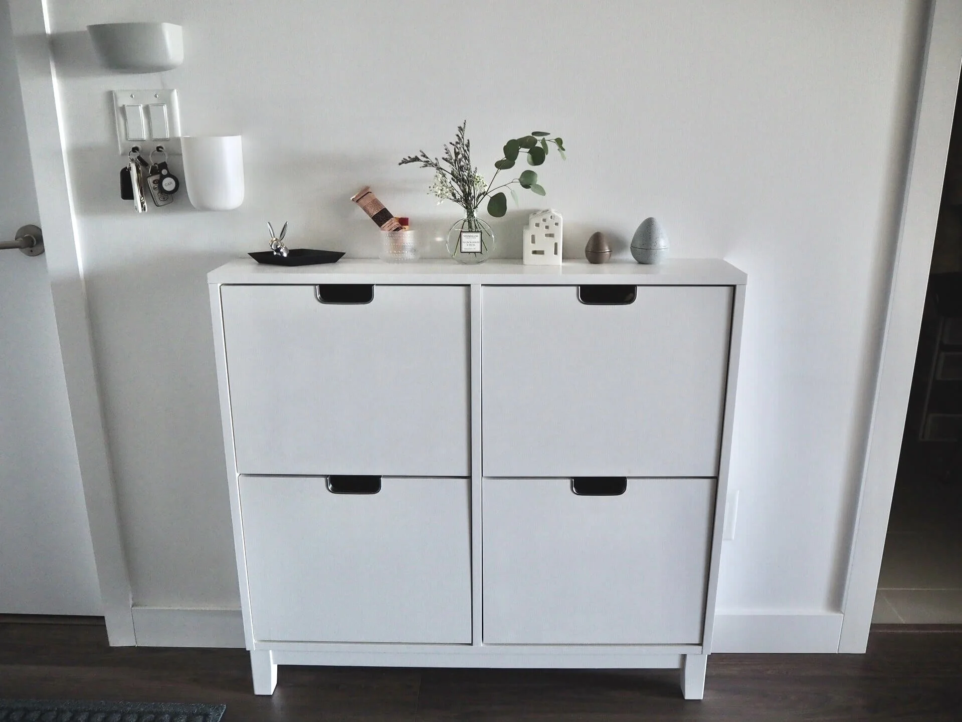 そんなわけでIKEAのエッグを使って玄関インテリアをこんな感じにアレンジ。