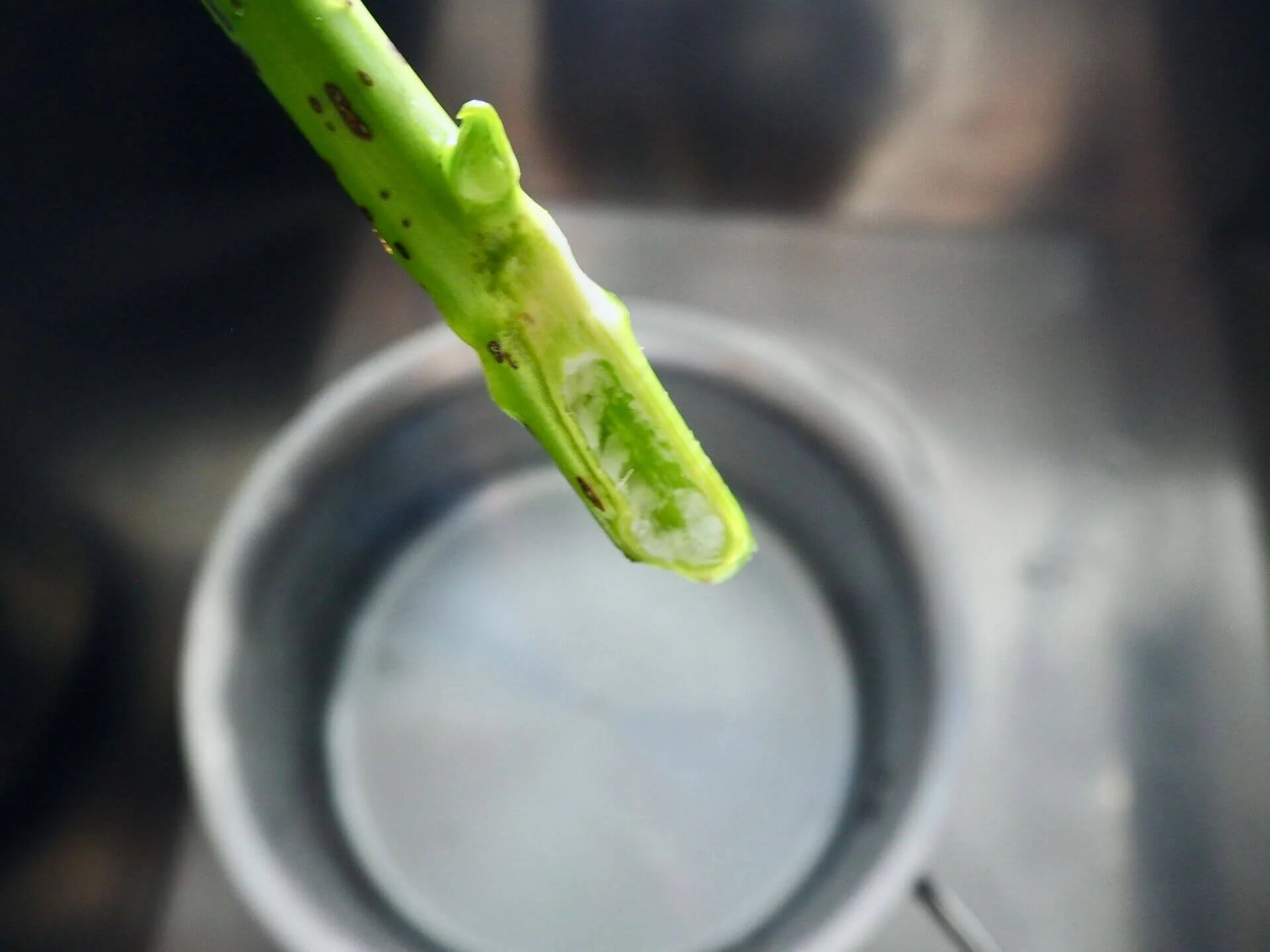水切りとは字の通り水の吸い上げを良くするために茎を水の中で切る方法。