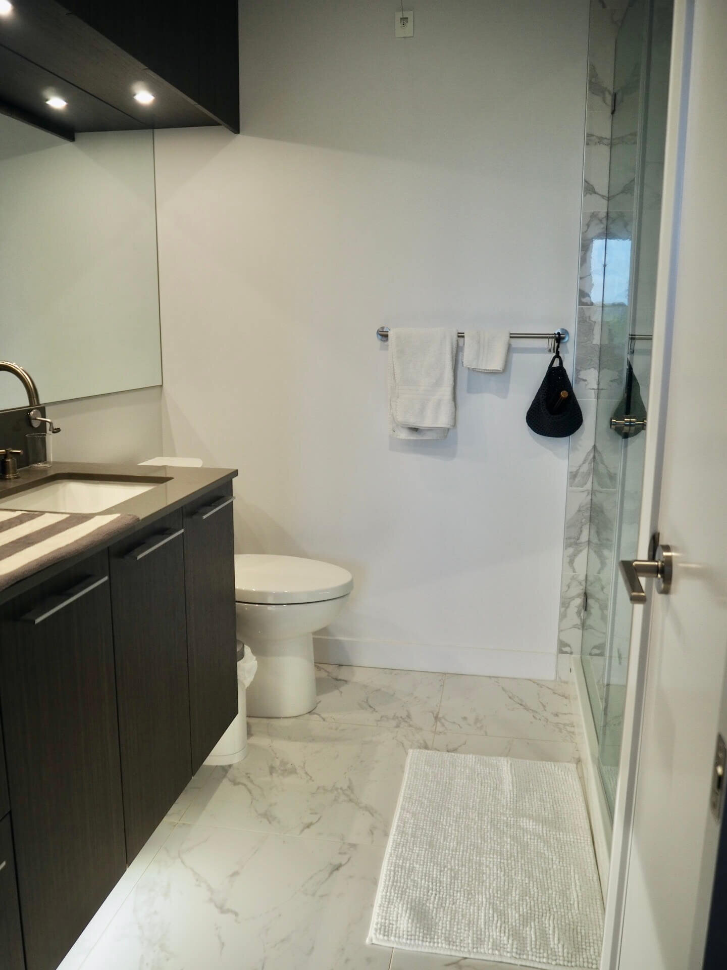 洗面台が意外と横に長いので距離があるしタオルハンガーの位置が私には少し高めで奥ばってる。