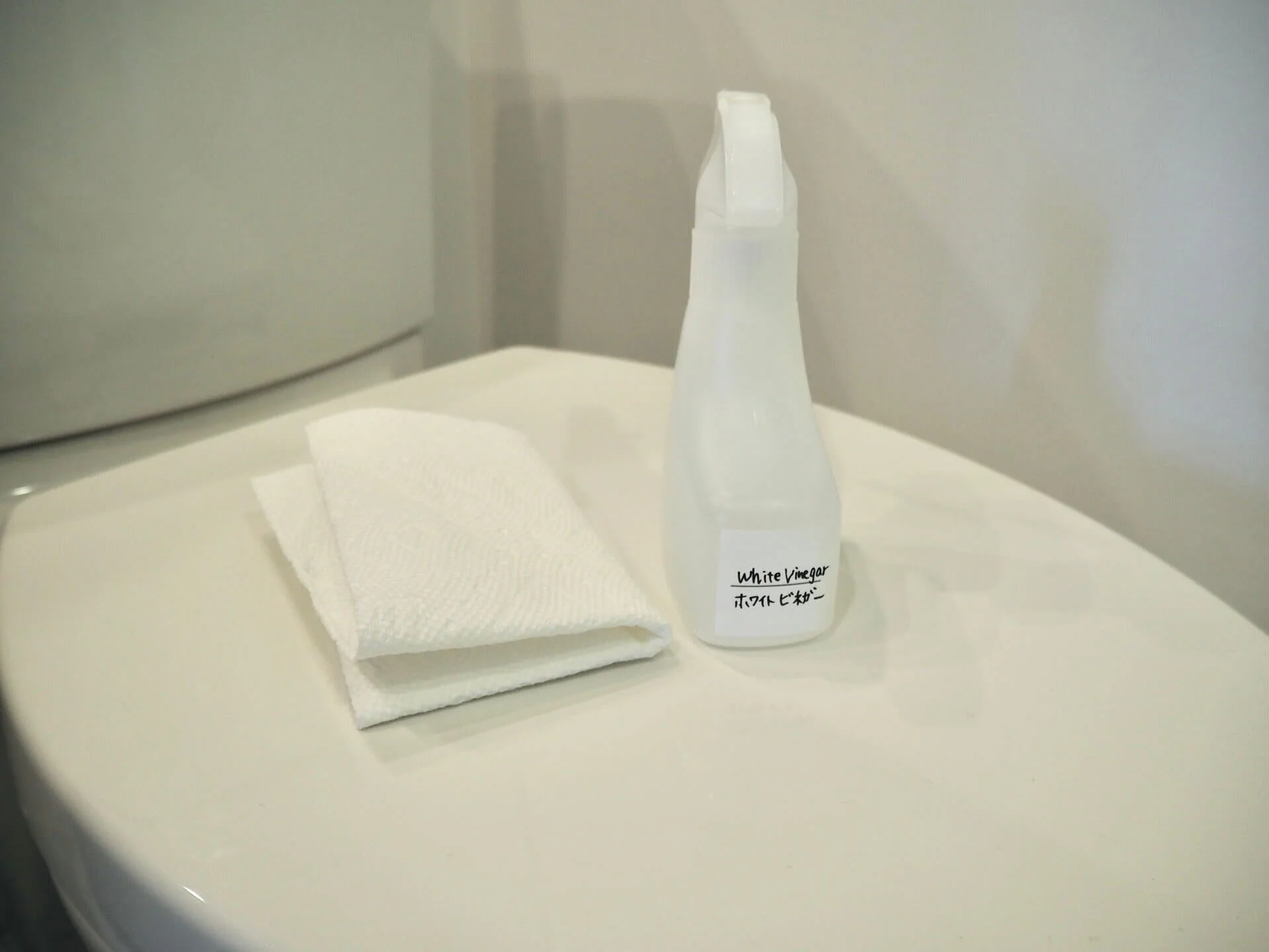 周りや便座はいつもホワイトビネガーとコストコのキッチンペーパーで掃除。