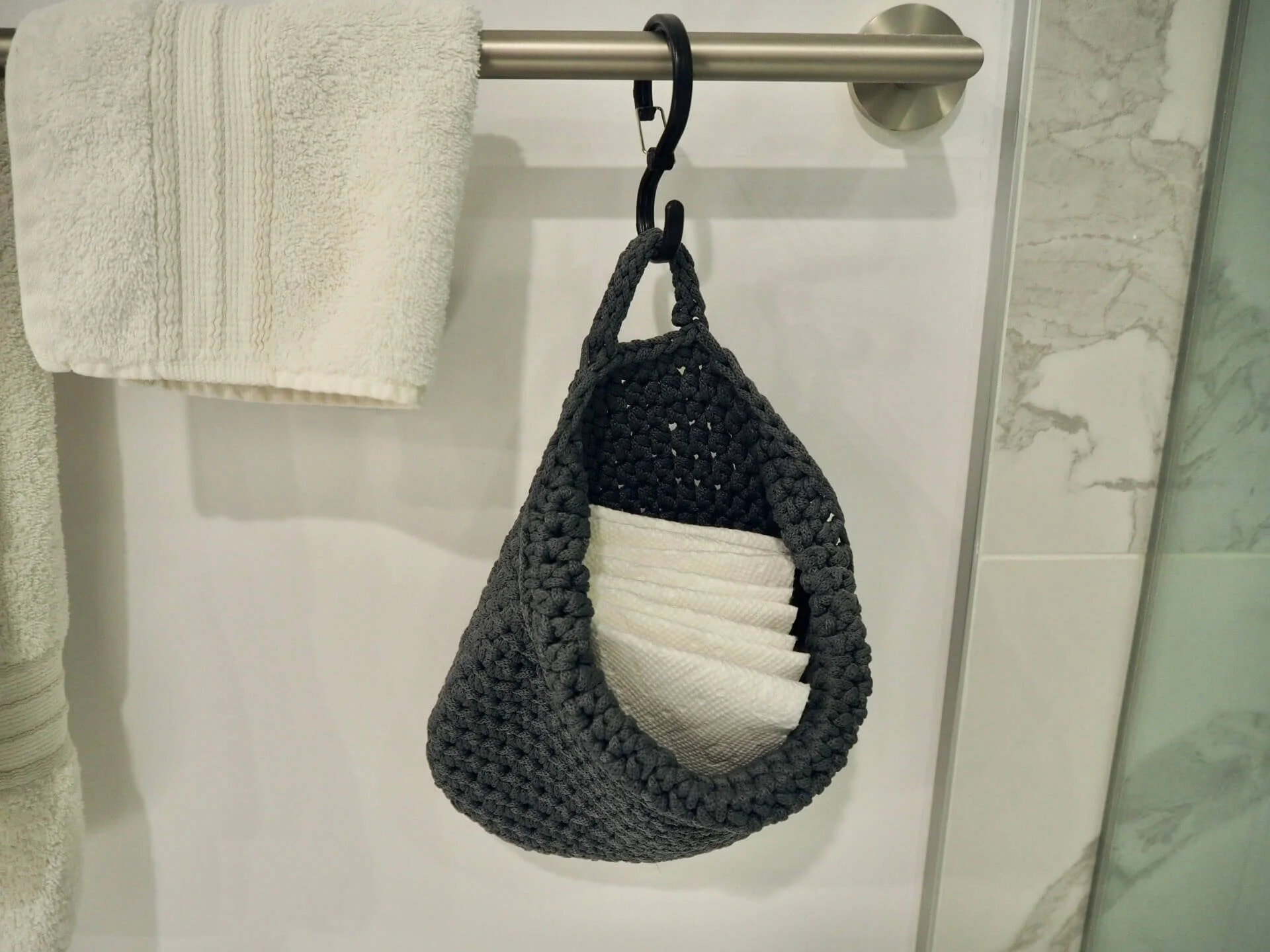 トイレ側に掛けたらサイドに手をスライドするだけで手を拭ける高さで