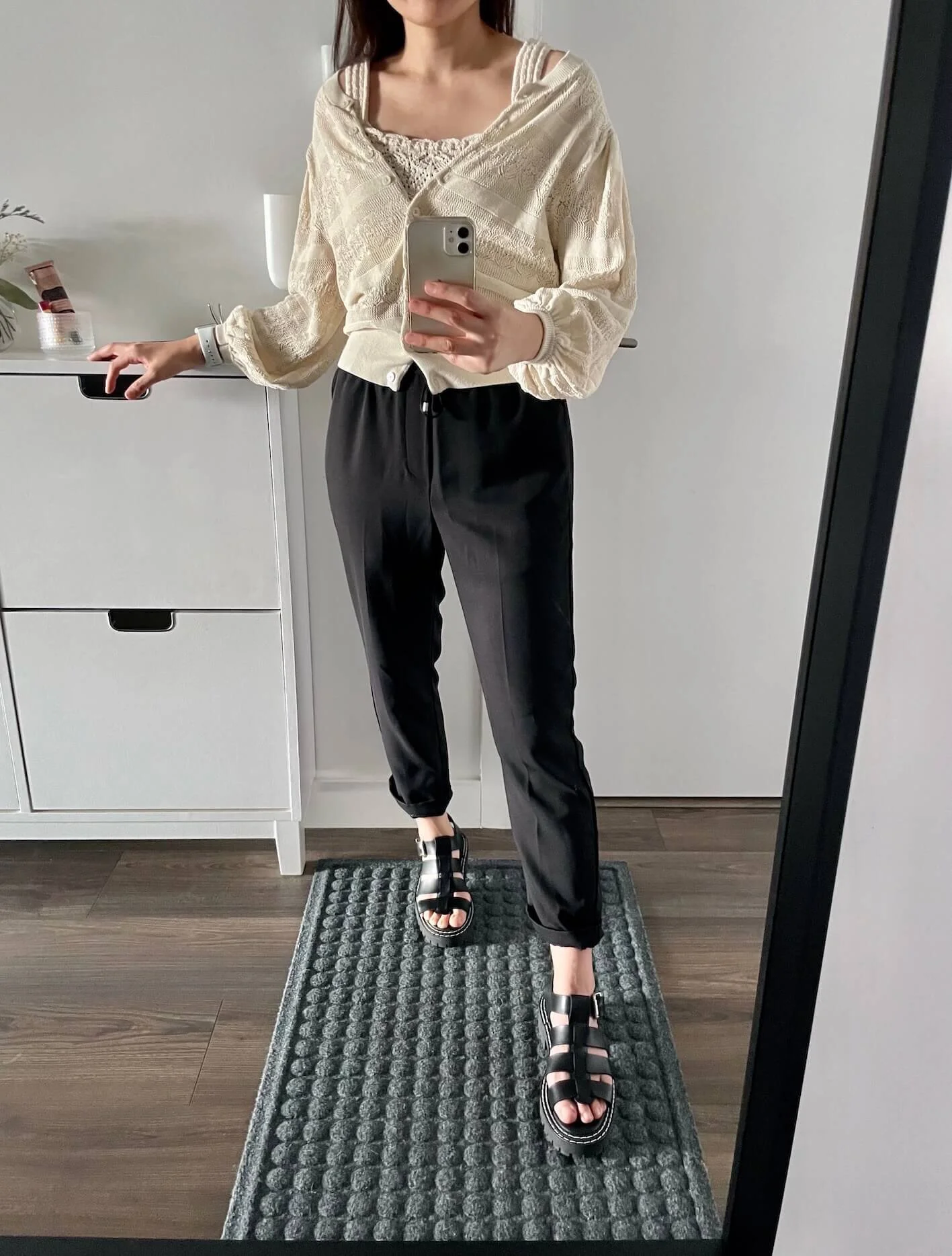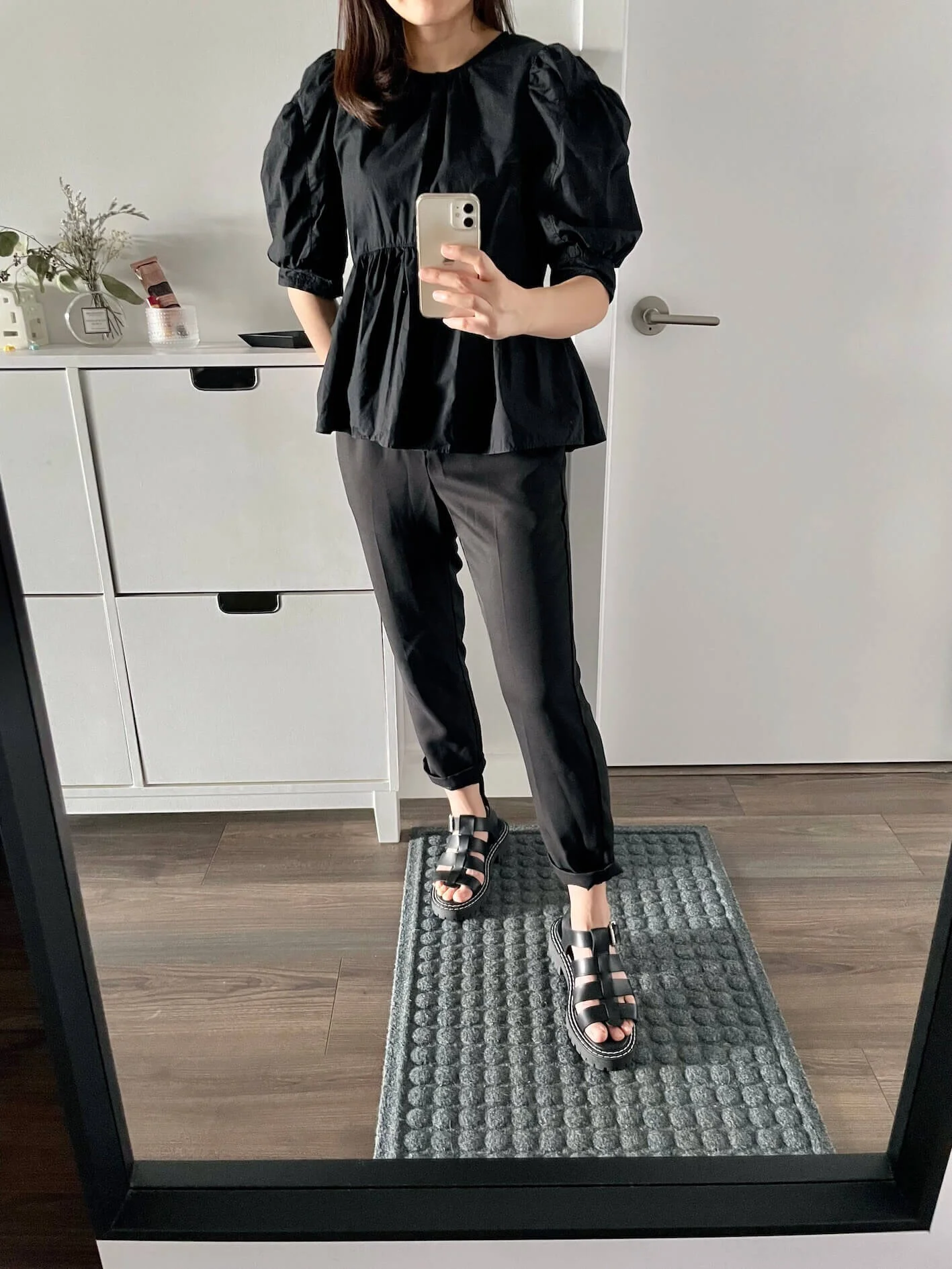 ちょっとボリュームがあるタイプのブラウスで少し重めコーデになったかな。