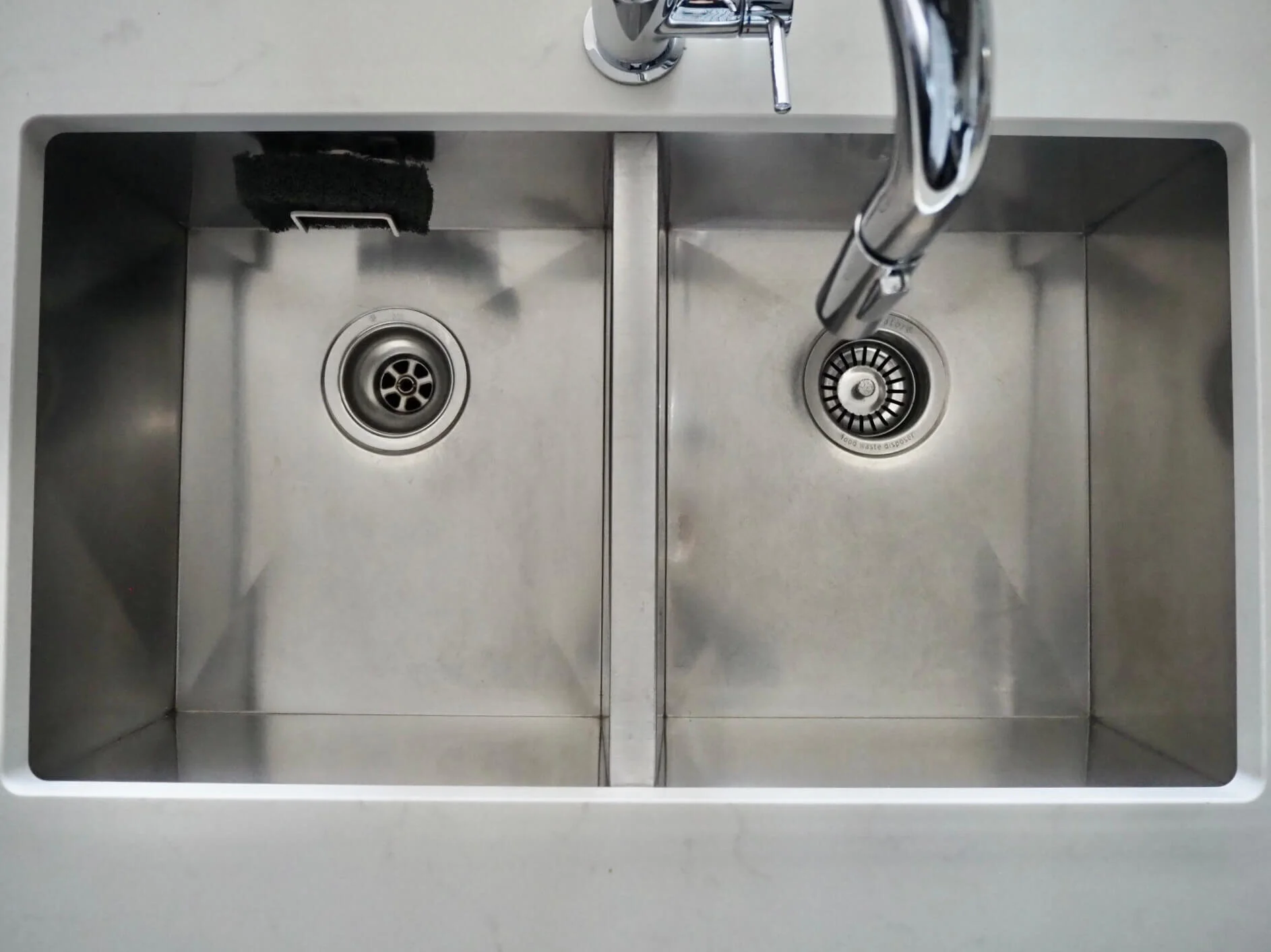 わが家のキッチンシンクは近くで見ると傷が多いので