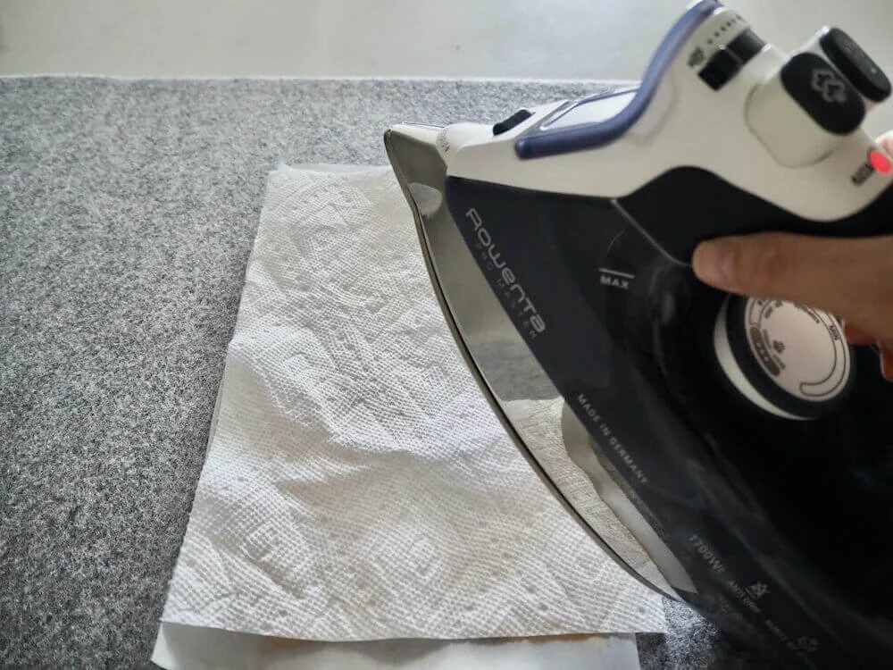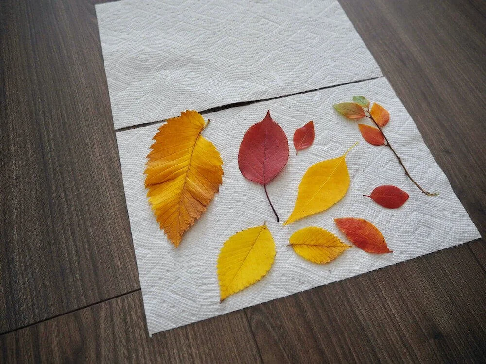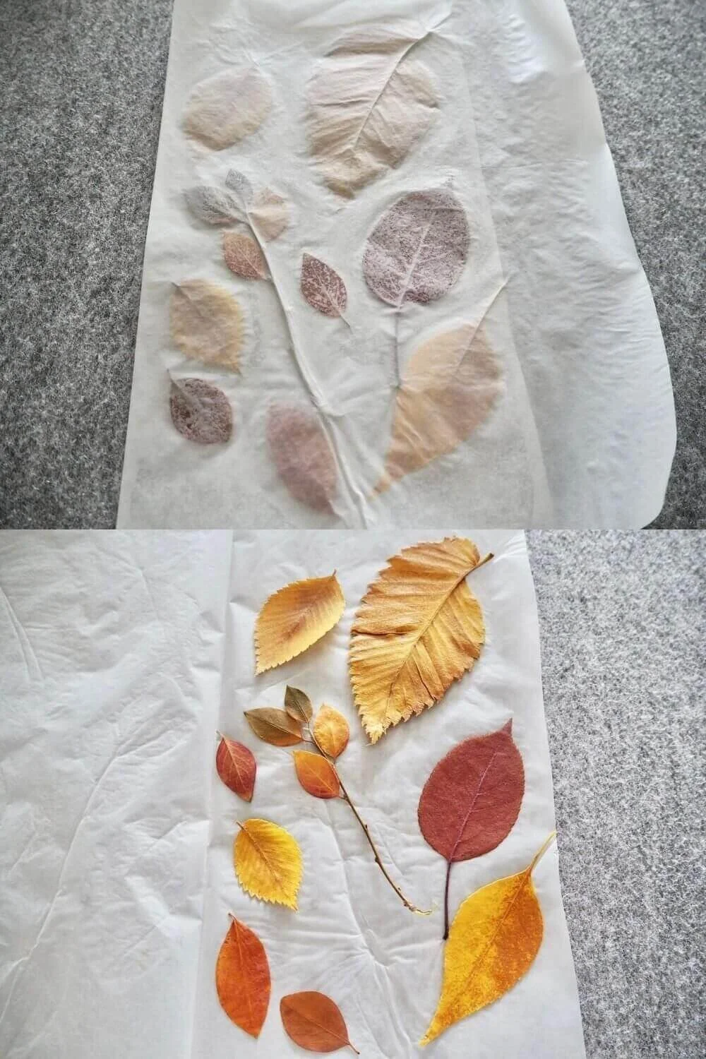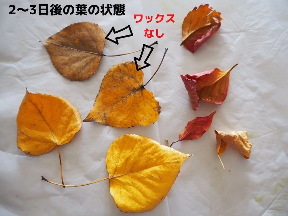 ワックスペーパーで落ち葉を挟んで4~5分アイロン掛け作業