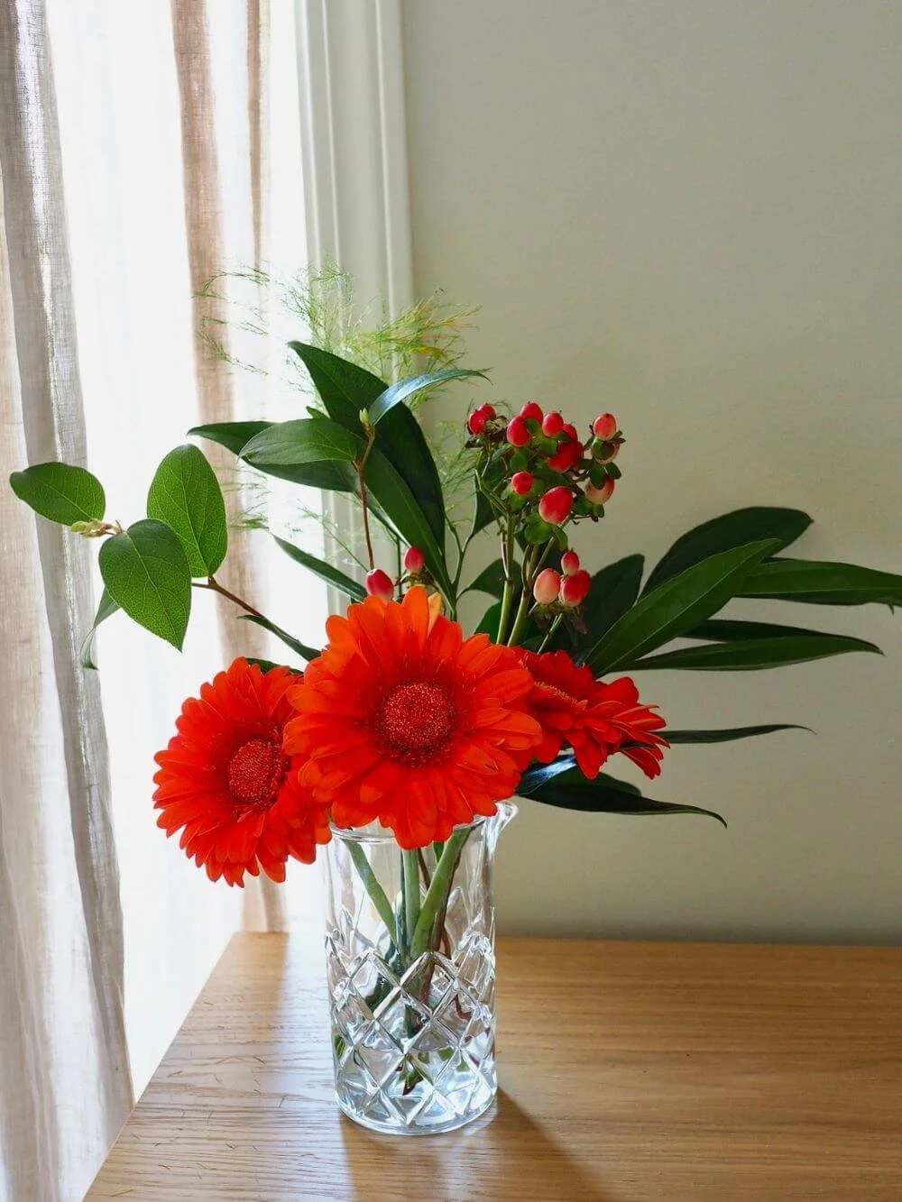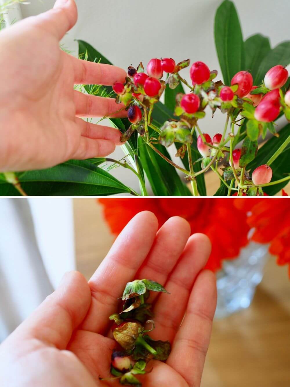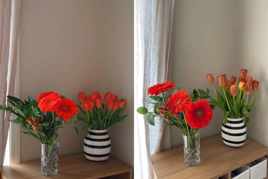 チューリップとガーベラの水切り後