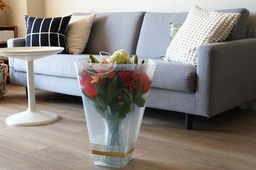 フラワーベースに水が入った状態で売られてたのもよかったポイント。