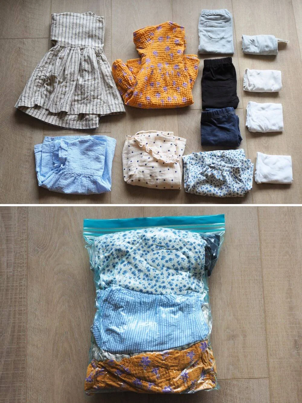 4日分の娘服を一番大きな袋に入れて圧縮。