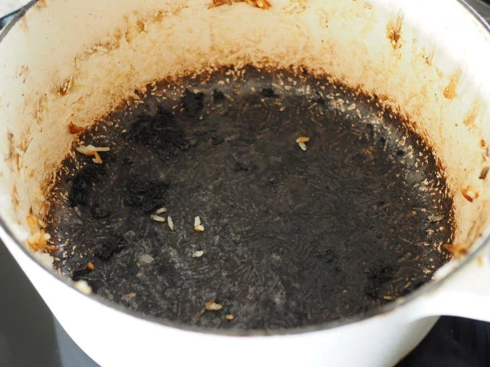 この焦げはル・クルーゼ鍋を使い出した7年間で