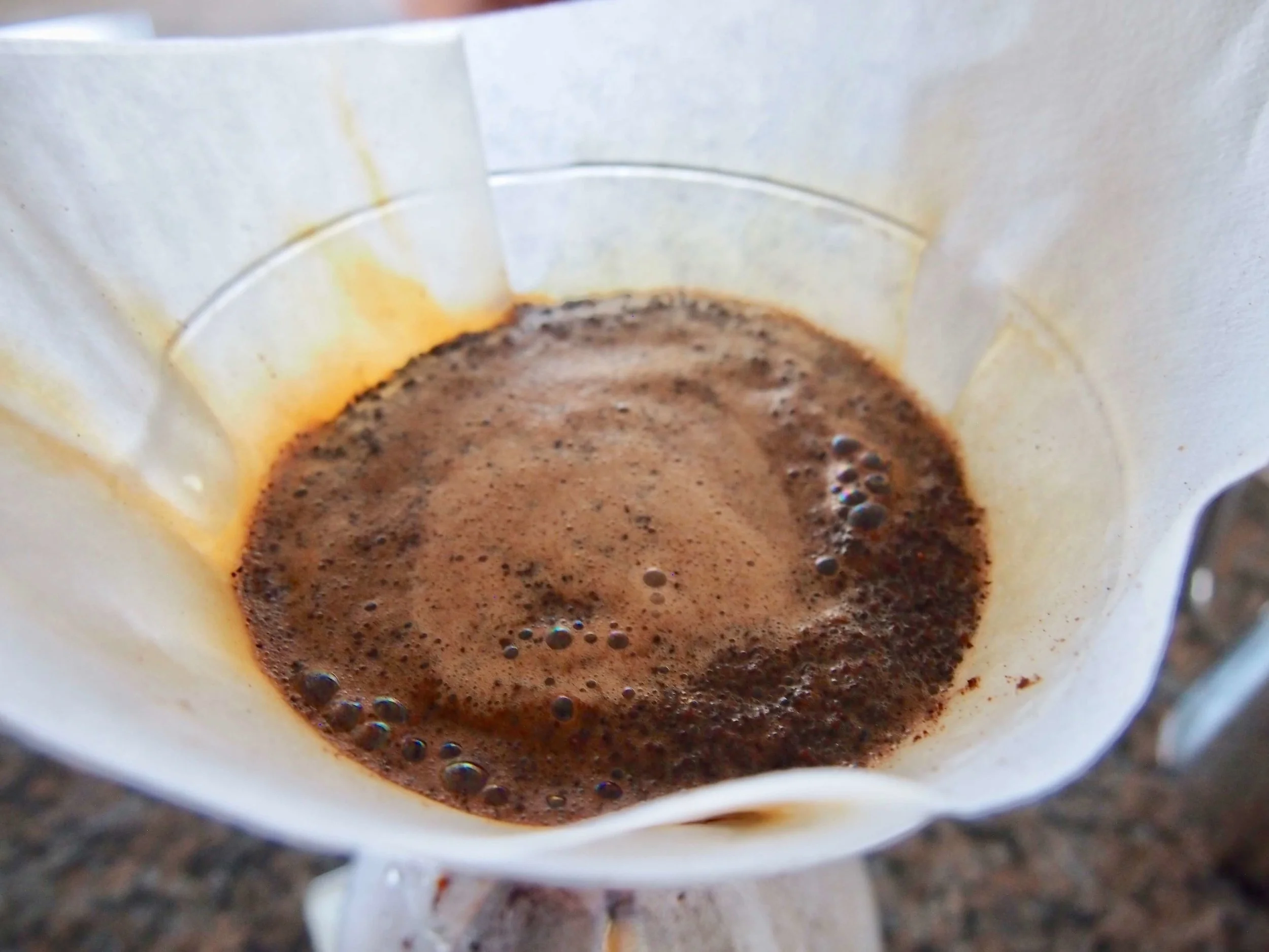 お湯を注ぐと、ふわっと挽いたコーヒー豆が膨らみます。