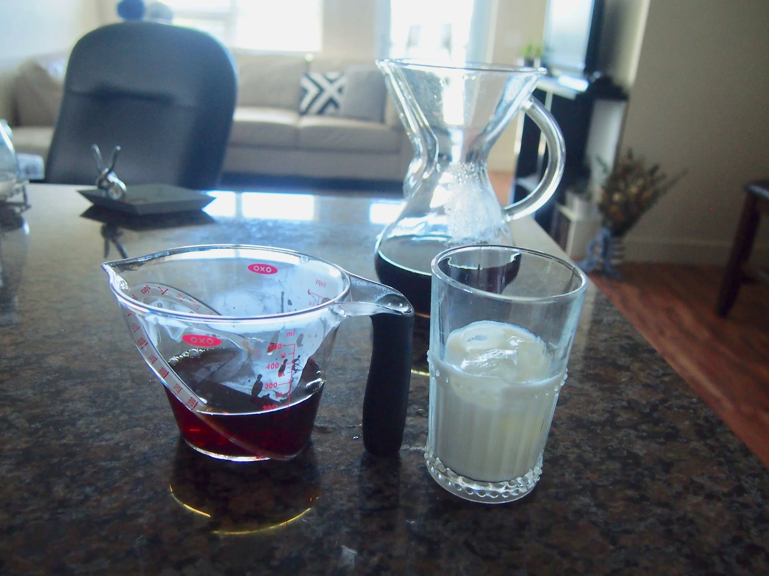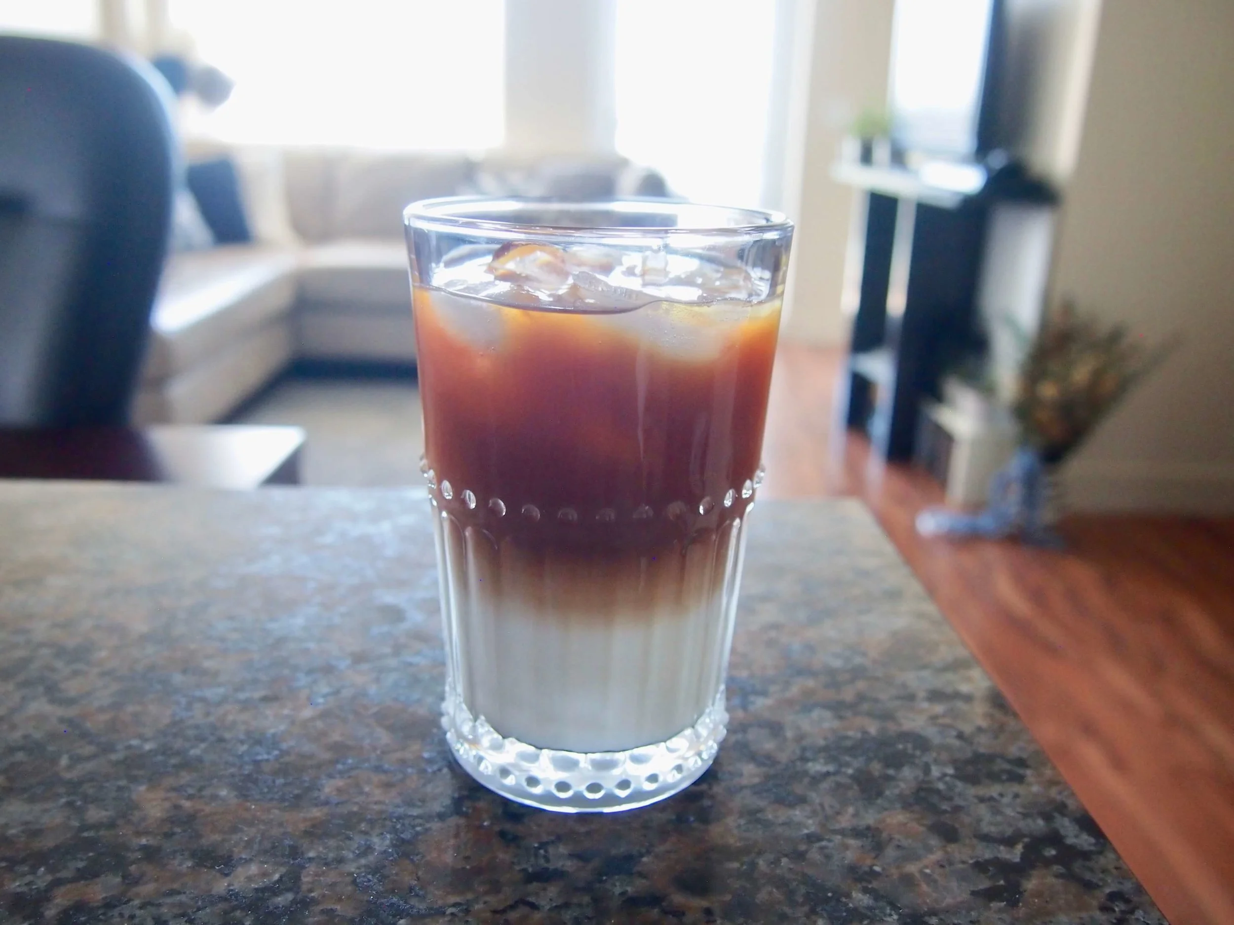 最初のものが失敗した原因は、氷が少なかったことと、ゆっくりコーヒーを注げなかったことかと。