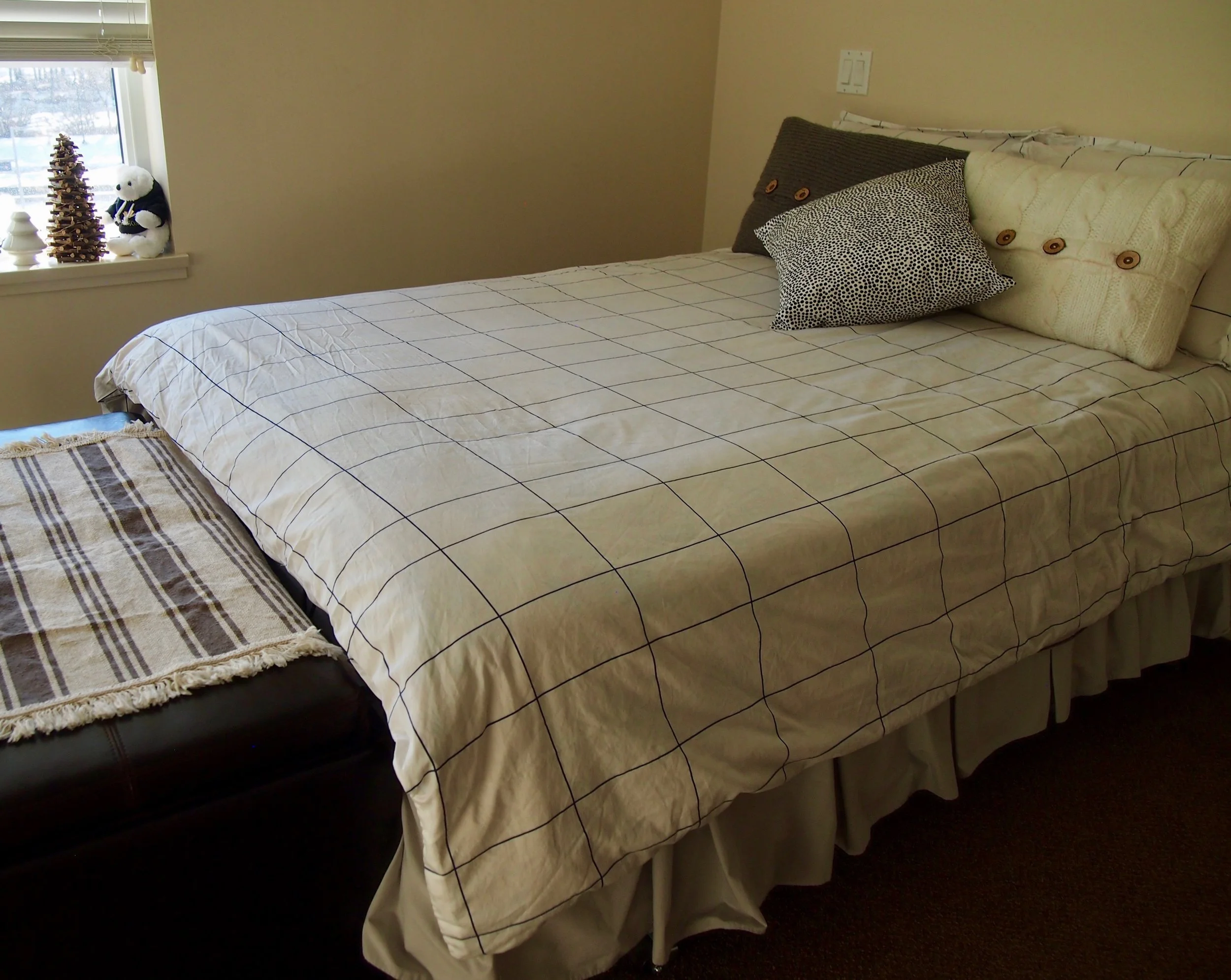あまりにベッドが簡素な作りなので、それを隠すためにベッドスカートを使用しています。