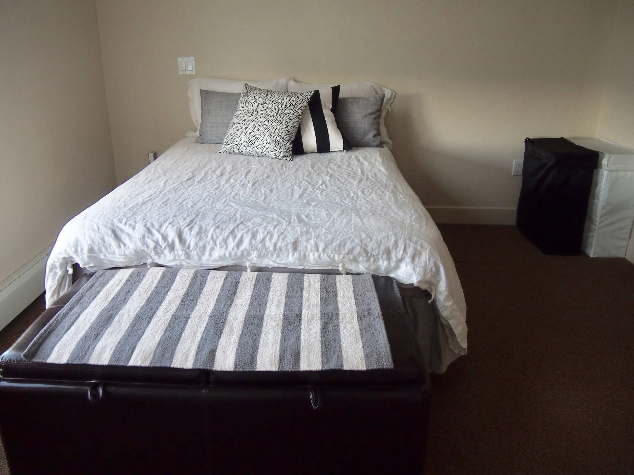 ちなみにバルコニーで使うために買ったクッション(白黒ストライプ)を使わない時は、寝室に一緒に飾っています。(マリメッコは元々寝室で使っていたもの)