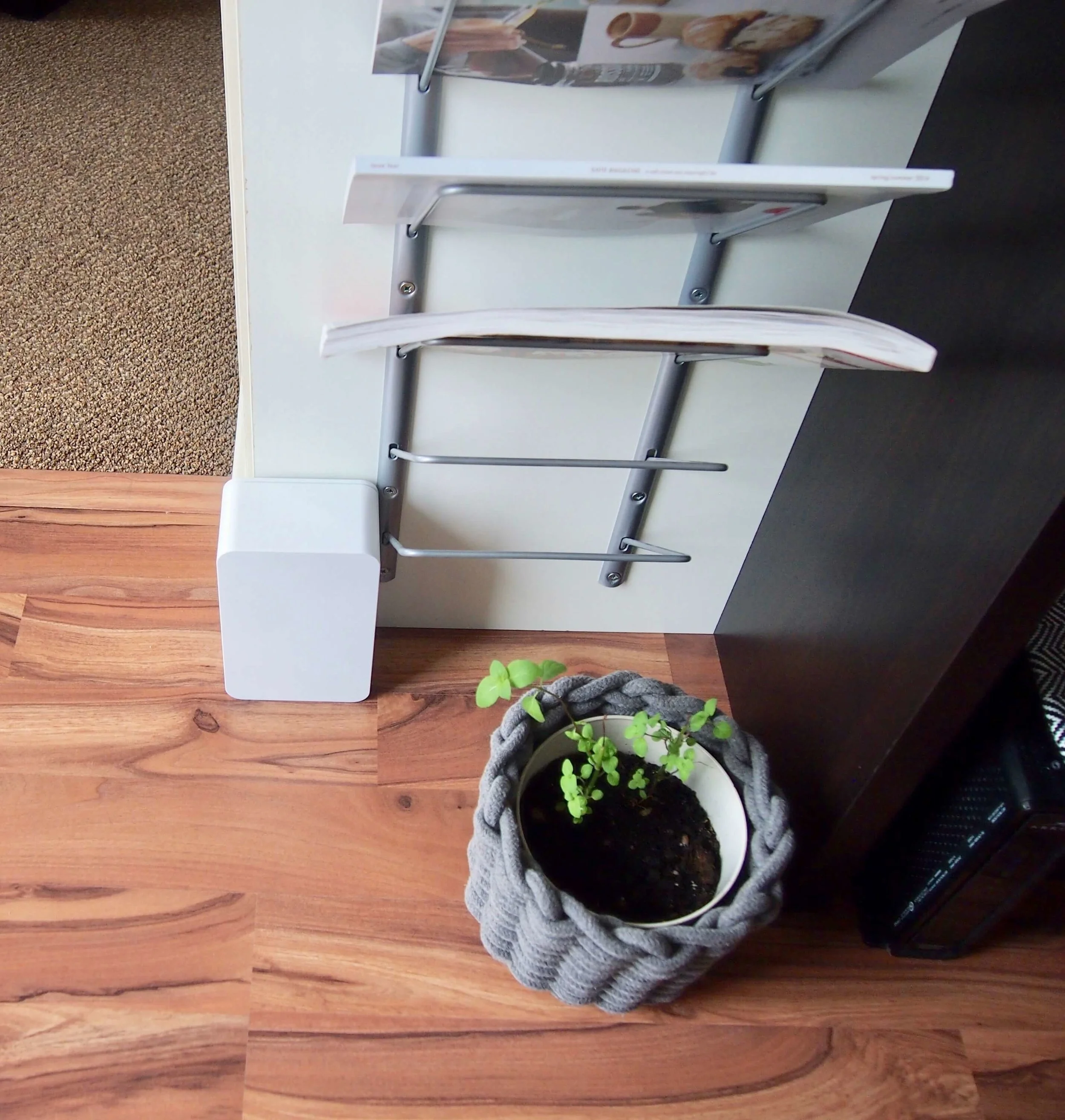 出しっぱなしの状態でも、シンプルな白いケースに入っているのでインテリアの邪魔になりません。