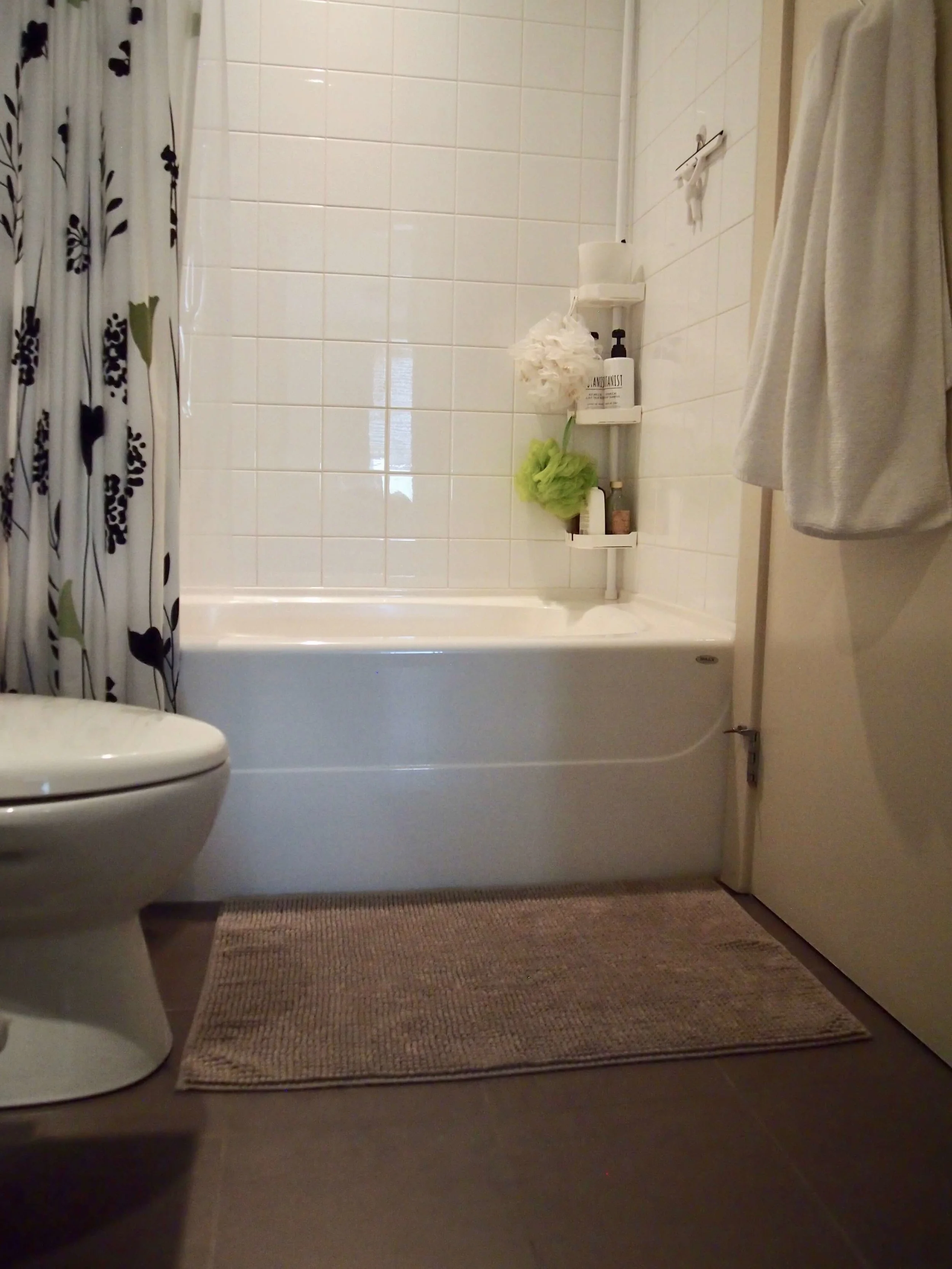 ちなみに、新しい白いバスマットは裏地が滑り止め加工されているので