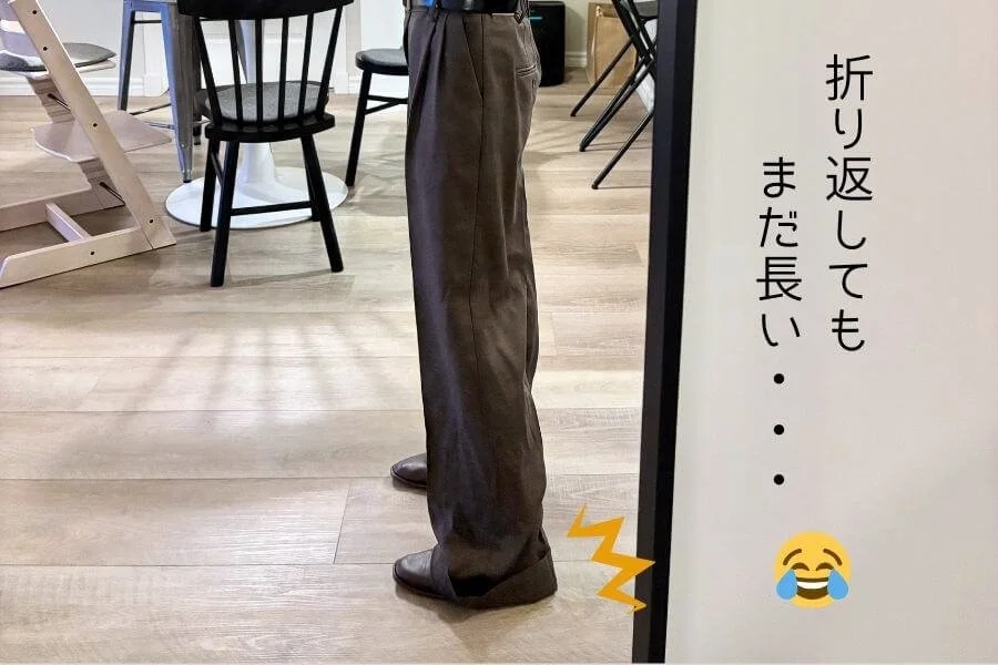 写真をよく見ると実は大幅に裾を折り返して着ています 😂